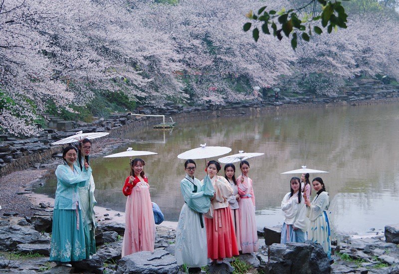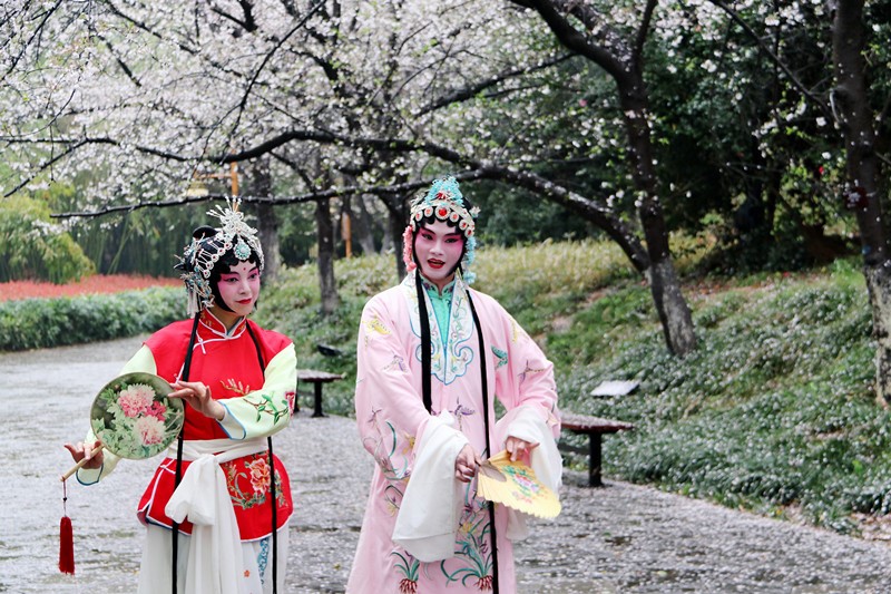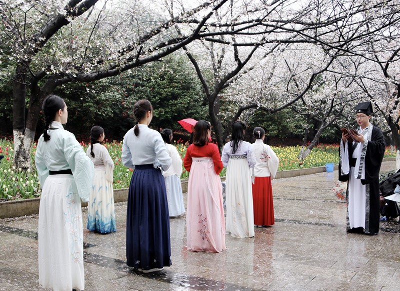 3月18日,省植物园和TOP旅行全媒体成功举办了“心心相樱 缘来是你”花朝节汉服游园会。活动现场,一位主祭司和十二位身穿汉服的女子作为从祭司一起虔以致礼,按传统三献礼依次献花、献果、献茶,祭拜花神。随后,表演者们以精彩的舞蹈、令人回味的昆曲演唱以及民乐斗彩,表达对春天的祝福。仪式结束后,大家三两成群,结伴在园内踏青赏花,沉醉于春天的美景。整场活动生动地重现了花朝节的传统节仪,吸引了众多游客驻足围观、拍照留念,也让更多人认识了中国传统“花朝节”。