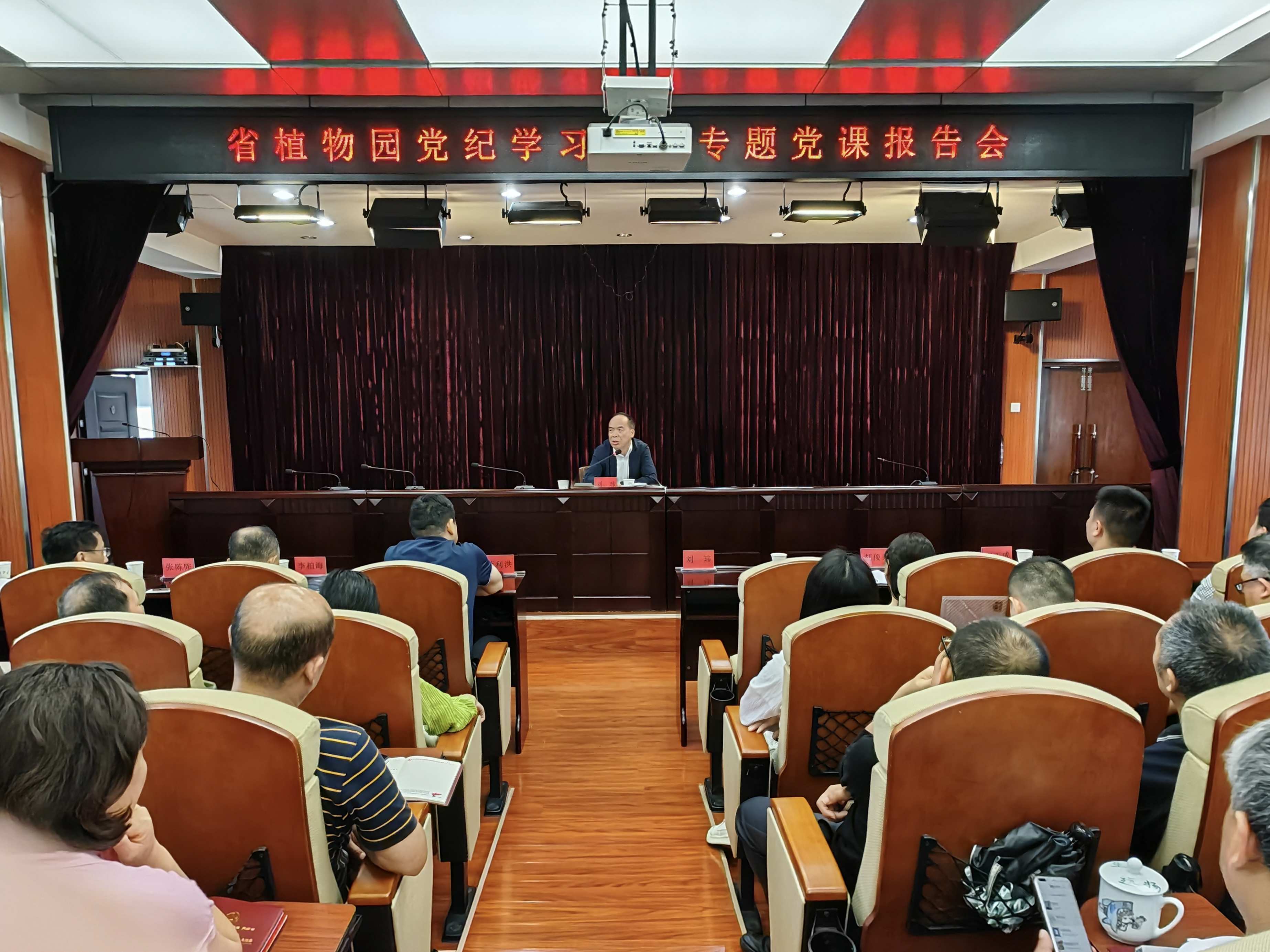 6月27日上午,湖南省植物园召开党纪学习教育专题党课报告会。园党委书记刘玮带头作专题党课报告,园各部门正副职、退休支部支委、全体在职党员参会。