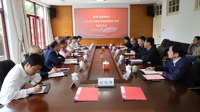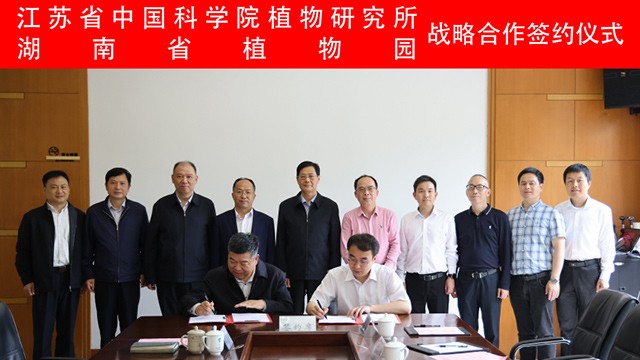 5月5日,江苏省中国科学院植物研究所(南京中山植物园)与湖南省植物园战略合作协议签约仪式在南京市举行。江苏省中国科学院植物研究所长姚东瑞,党委书记宇文扬,纪委书记金健,副所长梁呈元、汪仁及相关部门负责人,湖南省植物园党委书记刘玮,主任马涛,副主任李柏海、廖菊阳及相关部门负责人等出席签约仪式。