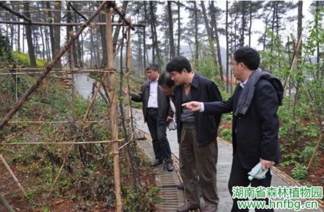 2013年3月16日下午,湖南省科技厅杨治平副厅长来我园进行了调研。杨厅长实地考察了樱花专类园、观赏竹专类园、珍稀植物园、药用植物园、世界名花园和组培中心及蓝莓项目,听取了园副主任刘玮研究员关于植物园科技工作情况汇报。杨厅长对我园在植物迁地保育、专类园建设、竹藤与花卉开发和组培快繁等方面取得的成绩给予了充分肯定,希望我园能加大植物资源的利用、“居室园艺”等领域的研究和产业开发力度,加快成果转化,促进林农致富。湖南农业大学龙岳林教授和园科管处、研发中心、园林建设处和园林公司主要负责人全程陪同考察。