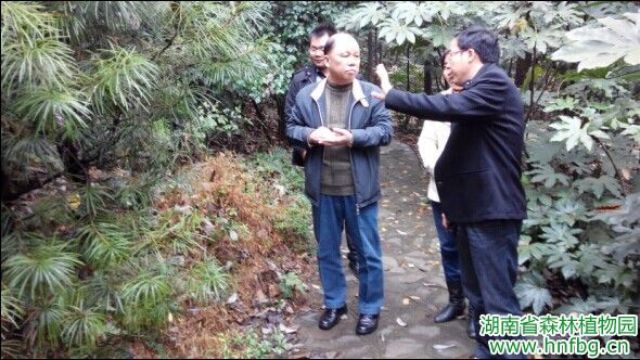 2014年11月25日,广西壮族自治区林科院党委书记丘小军研究员在湖南省林院科管处负责同志陪同下来我园考察。