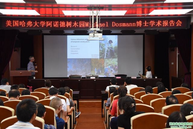9月18日Michael Dosmann博士在省植物园开展了学术报告会,园党委副书记,园副主任刘玮同志主持了学术报告会,园副主任李柏海博士亲自担任报告翻译,全体在家的园领导与职工参加了学术报告会。