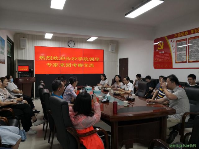 6月24日,长沙学院研究生学院副院长陈建荣教授带领学院相关领导专家一行20人来我园考察和交流座谈。自然教育中心主任曾桂梅和科管处副处长王萍及自然教育中心全体人员出席了座谈会。