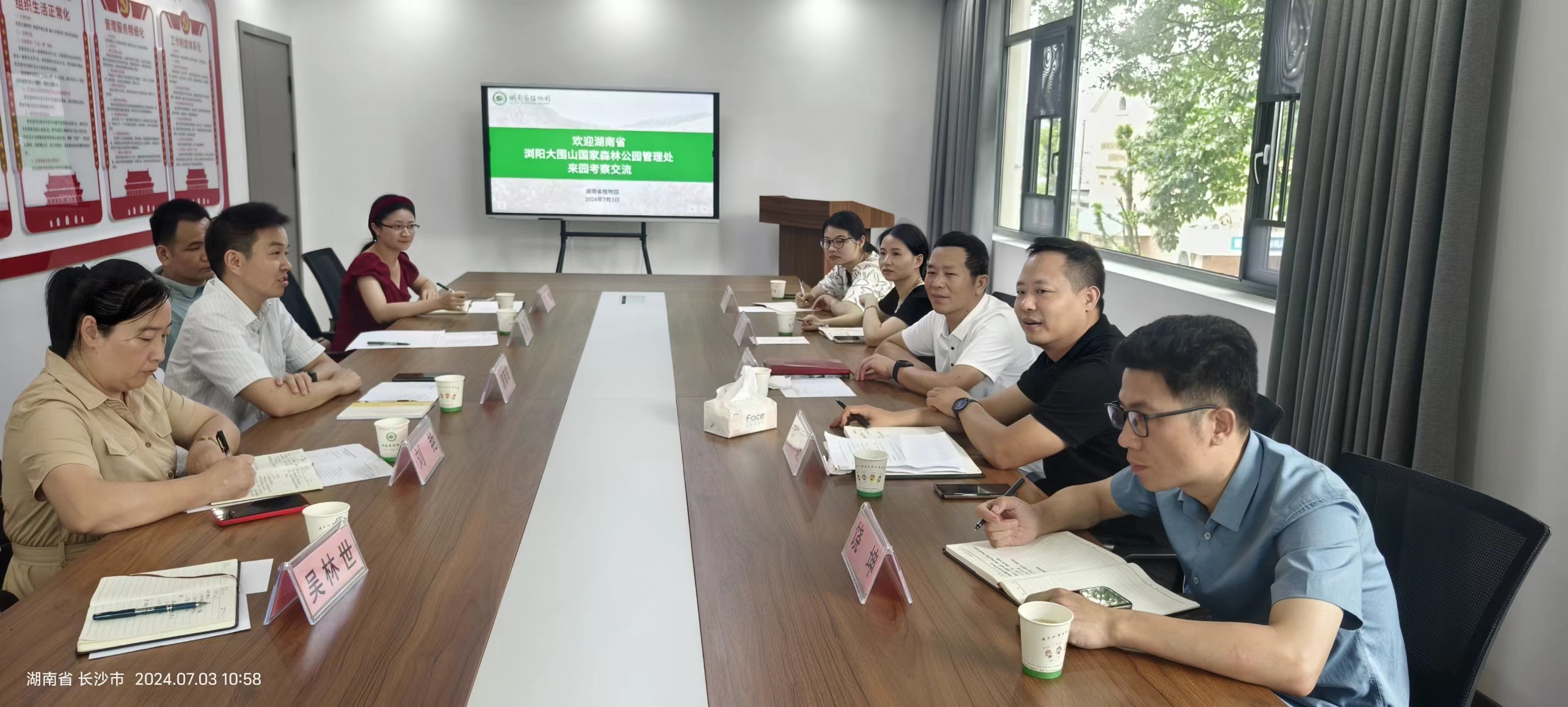 7月3日上午,湖南省浏阳大围山国家森林公园管理处党组书记陈旭一行来园进行考察交流,园党委委员、副主任廖菊阳,生态所、综合部科管负责人及相关科研人员陪同考察。