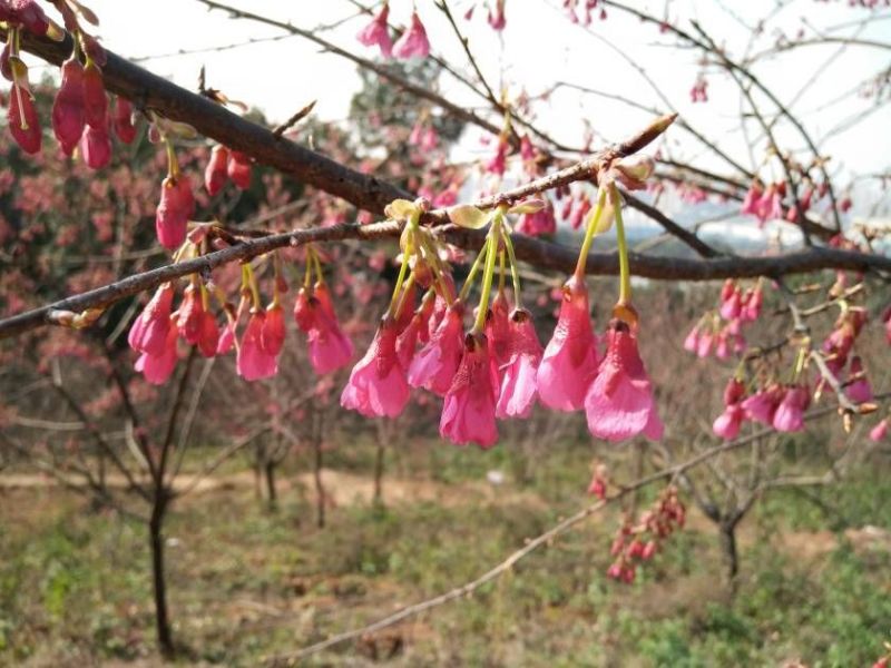 在台湾、福建、广东等地区,钟花樱往往在春节之前开花,入冬以来,长沙一直比较温暖,钟花樱因此提前开放,绯红明快的花色给春节带来了喜气。