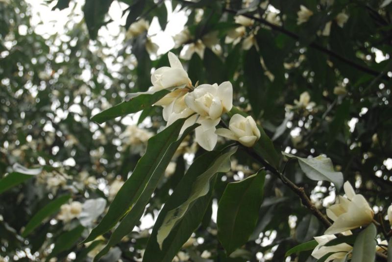 )此时开得正好,是木兰科含笑属常绿乔木,嫩枝、芽、嫩叶均被红褐色绢毛。叶薄革质,分枝较低,侧枝发达,树形开张。叶薄革质。早春开白色花,大而密集,有香味。园林观赏或绿化造林用树种。分布于中国湖北、湖南、广东、贵州等地。