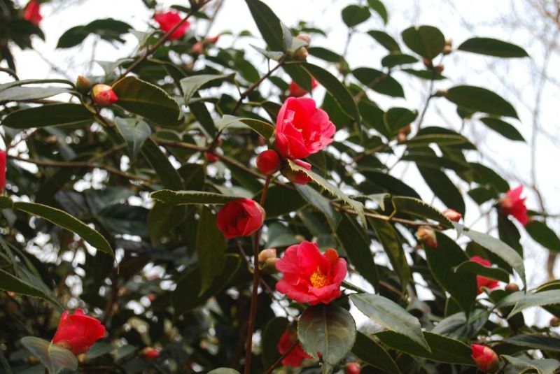 冬季、早春是来植物园赏茶花的好时节。我们的茶花园收集了十八学士、紫魁等30多个山茶花(