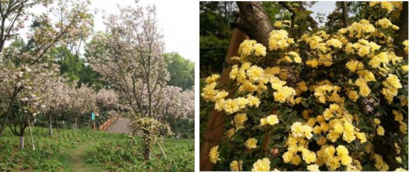 目前我园共引种数十株,今年如期开花,特意定制的黄木香拱门初见成效,与普贤象樱花的立体搭配给人耳目一新的感觉。
