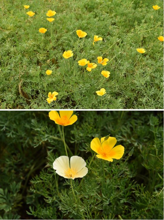 在植物园名花广场上,有一种黄色的花正呈蔓延之势,优雅又充满野趣的花朵快连成了片,那是另一种名花——花菱草。