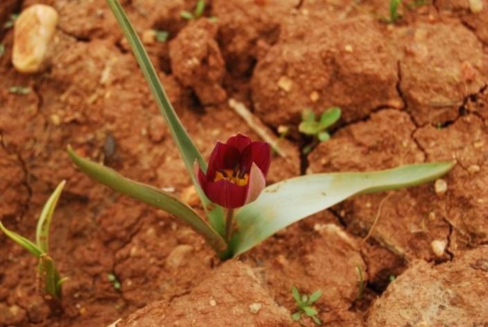 郁金香栽培品种分类群里有一个混杂群(Miscellaneous Group),包含了一些原种、变种及具有野生种习性的品种,植物园首次引进该类群下10个种(品种)。它们的球根围径只有6~8cm,不到大多数郁金香品种的一半大小,花与叶也都十分娇小可爱,犹如小精灵。