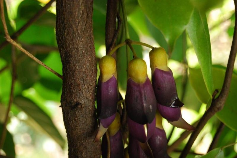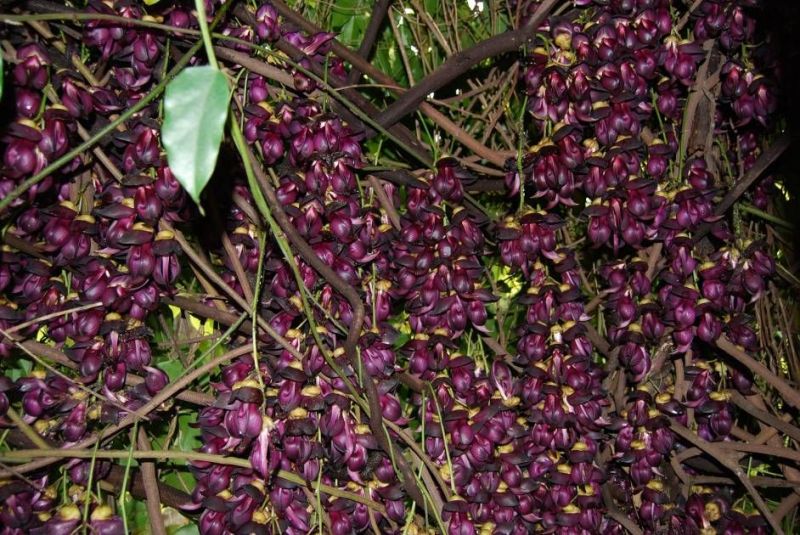 1、常春油麻藤(Mucuna sempervirens)是豆科黧豆属常绿木质藤本植物,总状花序生于老茎上,花型十分奇特,每朵花都犹如雀鸟,花期4~5月。观赏地点:北门藤本园。