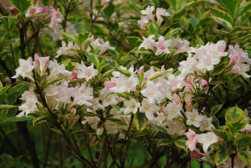4、花叶锦带花(Weigela florida‘Variegata’),忍冬科锦带花属落叶灌木,叶缘乳黄色或白色,花粉色,开花时花团锦簇、极其繁茂,花期4~6月,是花叶共赏的优良园艺品种。观赏地点:动物园路沿线。