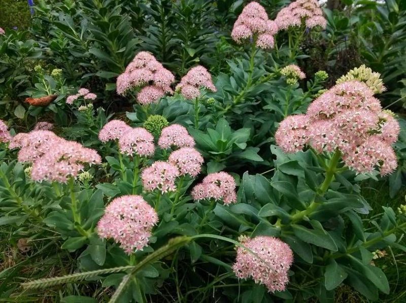“旧花”未谢,而新的观花、观果植物又上线了,那便是八宝景天和红果腺肋花楸了。八宝景天是景天科植物,多肉家族的一员,肉肉的叶片、紧凑的株型,光看它肉肉的样子就足够了,而它的花却也十分美丽,花期8~10月,粉红色的伞房花序顶生,花序直径达10~13cm,花朵密集,是布置花坛、花境和点缀草坪、岩石园的好材料。红果腺肋花楸花后不久幼果膨大,直到最近才开始变红,红色果实冬季宿存枝头,是优良的观果植物。