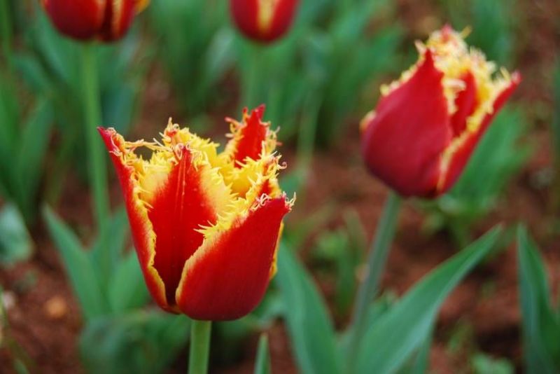 热情鹦鹉(Tulipa‘Flaming parrot’,鹦鹉群)