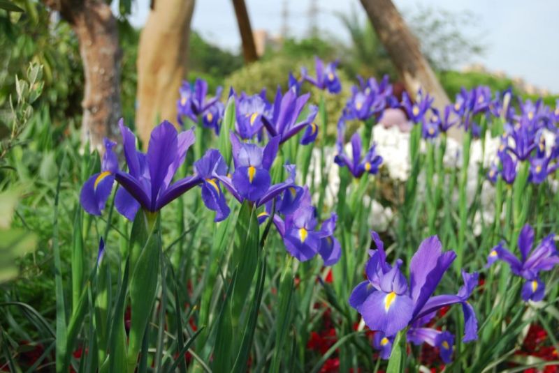 荷兰鸢尾并不是指一个物种,而是荷兰人在西班牙鸢尾(Xiphium Irises)中选育出来的一些抗性更强、花径更大、花期更早的品种,具有较窄的花被片与较好的吸水性,常用作切花,也适宜园林栽培。荷兰鸢尾为秋植球根花卉,具有和郁金香类似的球根,喜欢生长在排水良好、温暖且阳光充裕的地方,秋冬长叶,4~6月开花,夏季地上部分枯萎,进入休眠。我园今年引进‘阿波罗’、‘卡萨布兰卡’、‘蓝魔法’、‘神秘美人’、‘虎眼’、‘宝蓝美人’、‘银美人’共7个品种,囊括了黄、白、蓝、棕、紫等多种颜色,预计4月开花。
