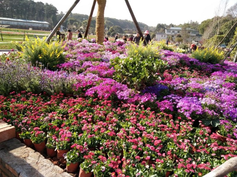 为了配合我园第九届世界名花生态文化节的盛大开幕,烘托春花繁茂、百花齐放的气氛,园建处在名花广场入口处设计并布置了一个花卉种类丰富的花坛(花境)。该花坛共计应用了十五种花卉、三千多盆花卉,其中包括瓜叶菊、雏菊等时令花卉,也有百合、金鱼草、金雀儿等高档盆花等等,可谓种类丰富、色彩缤纷,这样的美景可千万别错过。