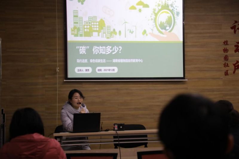 自然教育中心黄秀副主任以“碳,你知多少?”为主题带来了一场生动的科普讲座。通过讲座,向大家普及宣传科普知识,倡导简约适度、绿色低碳的生活方式,宣传“碳达峰”“碳中和”知识,引导广大居民增强节约意识、环保意识、生态意识,把建设美丽长沙转化为自觉行动力。