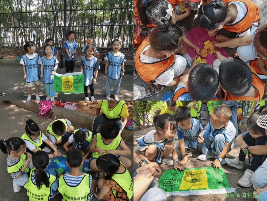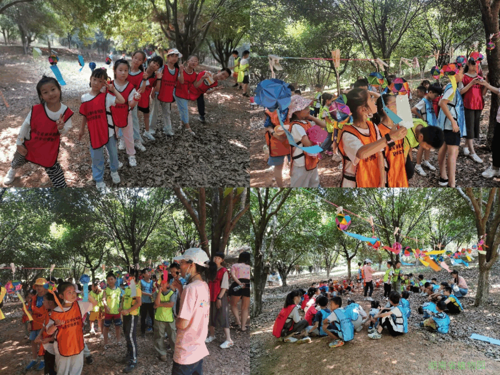 我们将设计精美、秋、快四张纸,分解成不规则的小纸片,通过集体的智慧重新粘贴在一起,然后各小队起队名、喊口号、设计队旗,展示……”,整齐嘹亮童声在植物园紫藤长廊飘扬