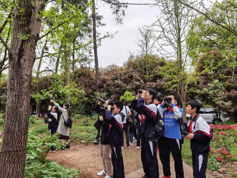 植物园有着丰富的鸟类资源,可供观赏的鸟类比较多,是观鸟爱好者理想场所。接下来的实践课,野保协会的同学带领大家去园区观察鸟儿的生活,首先野保协会的同学教大家学会如何使用望远镜,因为观鸟不可以打扰鸟的正常生活。大家一边用望远镜四处打望,一边听野保协会的同学讲解。在药用植物园大家观察到乌鸫、松鸦、白颊噪鹛和白头鹎,在竹园大家还发现了棕头鸦雀和大山雀等鸟类,对它们的外形特征、栖息环境、生活习性有了较为深刻的认识。