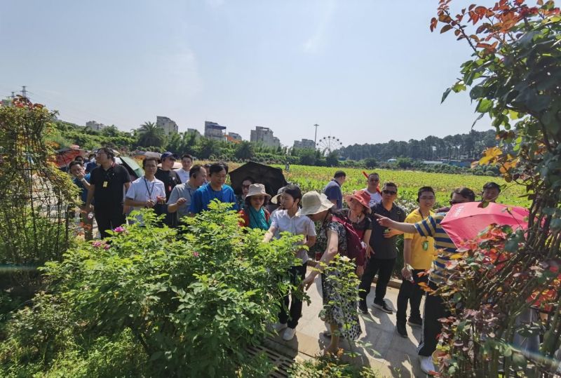 首先黄秀主任带领大家来到紫藤长廊开始中国植物探索之旅——探访富有传奇色彩的中国植物。中国植物,成就了辉煌的中华文明,黄秀主任从人类发展历史的纵向脉络着重讲解了月季、竹子、水稻、茶叶、桑树、银杏等10种具有代表性的中国植物,1万多年前,水稻、小米塑造了我们的农耕文明,尤其是袁隆平院士主持研究的杂交水稻,影响深刻;7000年前,桑树用身体里的蛋白质,成就了未来的丝绸之路;2000年前,茶树用一片树叶,造就了世界第一大饮品……黄秀主任介绍这些植物从远古走来,不仅为中国带来福祉,还不断迁徙到各地,以不可思议的方式改变着世界,为世界文明添彩。
