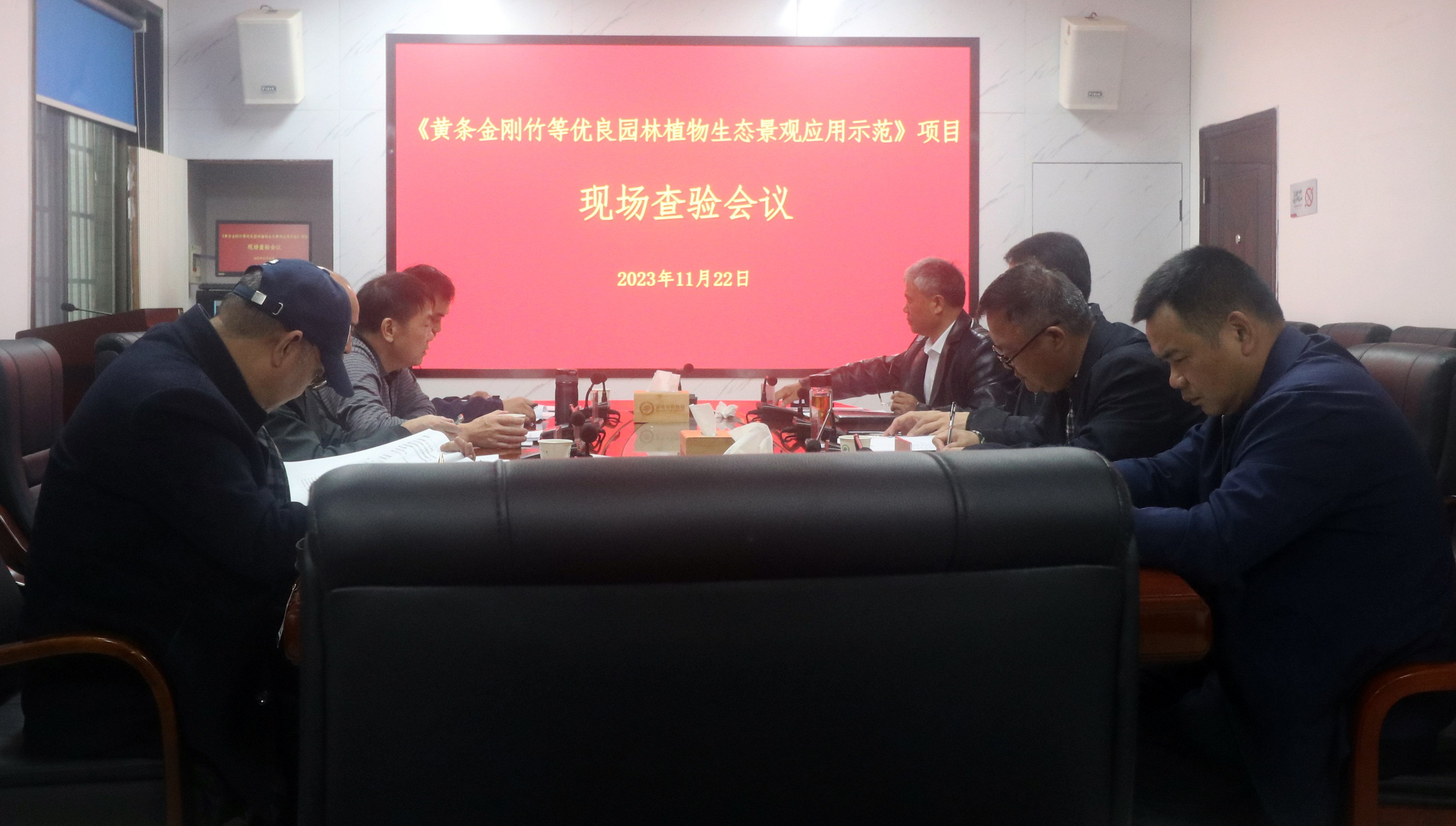 2023年11月23日,湖南省林业局组织有关专家对省植物园花卉所承担的中央财政林业推广示范项目“黄条金刚竹等优良园林植物生态景观示范”(编号:【2021】XT03号)项目进行了现场查定。查定专家组由省林业局科技合作处调研员陈佳辉、中南林业科技大学陈建华教授、省林业科学院田育新研究员等专家组成。省植物园主任马涛及综合部、花卉所等相关同志参加现场查定。