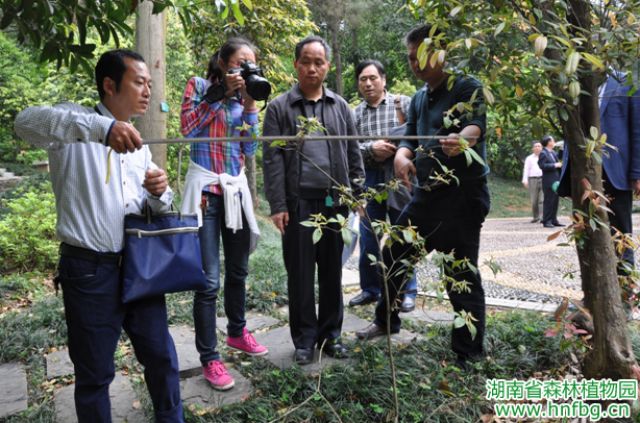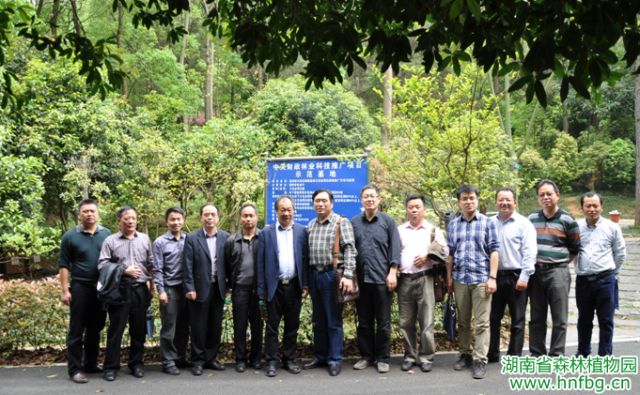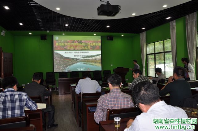 2016年4月7日,湖南省林业厅组织相关中南林业科技大学和湖南省花卉协会专家到郴州市林科所对我园承担的中央财政林业科技推广项目“喜湿耐水型杜鹃新品种大花金萼杜鹃的推广示范与应用”进行了现场查定。省林业科技推广总站蒋胜铎副站长、湖南省森林植物园刘玮副主任以及郴州市林业局等单位领导出席现场查定会议,项目技术负责人廖菊阳研究员汇报了项目完成情况。专家组通过查看现场、听取项目汇报、查阅资料和质疑答辨后,一致认为该项目圆满完成了合同规定的各项经济技术指标,达到了预期推广效果。