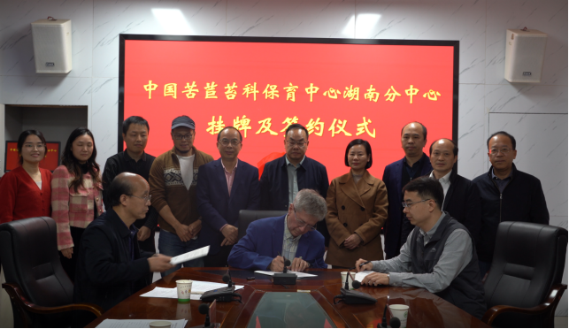 11月23日下午,广西壮族自治区中国科学院广西植物研究所党委书记黄仕训,园林园艺中心副主任韦毅刚,国家苦苣苔科种质资源库主任温放以及世界苦苣苔协会外联部部长、美国秋海棠协会会长Stephen Maciejewski等一行四人来我园考察交流,并举行中国苦苣苔科植物保育中心(湖南分中心)揭牌及合作备忘录签约仪式,湖南省林业局科技合作处处长李玉平、动保处处长陈春华莅临指导,我园党委书记刘玮、园主任马涛、党委委员康用权等参加揭牌及签约仪式。