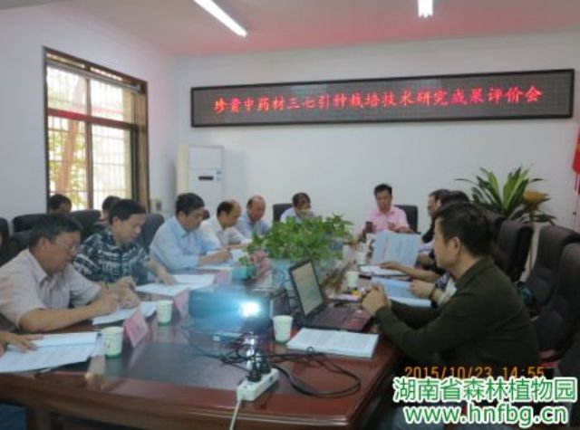 2015年10月23日,湖南省林学会组织中南林业科技大学、湖南农业大学、湖南省林业科学院等单位专家对湖南省森林植物园和洪江市雪峰药业科技开发有限公司共同完成的《珍贵中药材三七引种栽培技术研究》成果进行了评价,专家组听取了项目组汇报、查阅了相关资料、经质疑答辩,形成了如下综合评价意见: