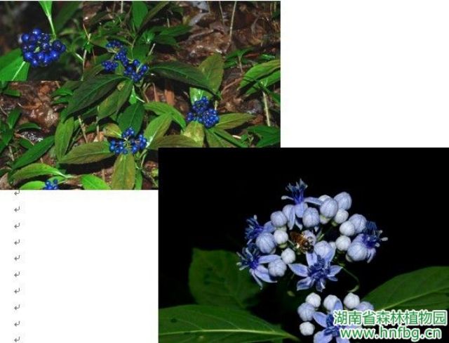 黄常山喜荫湿环境,可任意修剪,几无病害,少虫害。花多蓝色,果亮蓝色,美丽,独特,且黄常山可药用,其根、叶可作退热和抗疟药,主治痢疾、胸中痰饮积聚。因此,黄常山可作为城市适宜地方的园林荫湿地被植物,丰富地被植物多样性;也可以在郁闭度60-80%的林下生长,是强林富林的林下经济植物种类。