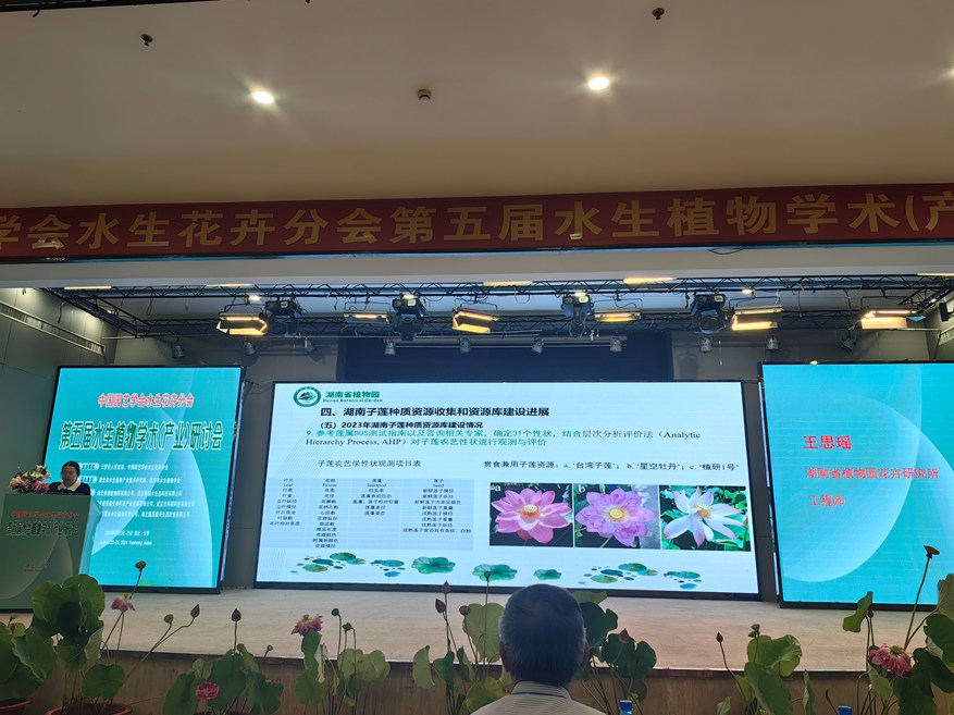 8月23日至25日,第五届全国水生植物学术(产业)研讨会在湖北省云梦县召开。中国科学院植物研究所研究员、中国园艺学会水生花卉分会理事长王亮生以及来自全国各地的近200名专家、学者参会。我园花卉所科技人员应邀参加会议,王思瑶博士向大会做了题为《湖南子莲种质资源库建设进展》的学术报告。