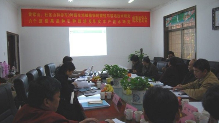 2011年12月29日,由我园科学研究与发展中心颜立红研究员主持的“黄常山、杜茎山、赤车扦插繁殖与栽培技术”项目通过由湖南省科学技术厅组织、湖南省林业厅主持的科技成果鉴定会。专家一致认为:①该项目系统研究并提出了黄常山、杜茎山和赤车3种野生植物的扦插繁殖和栽培技术,为黄常山、杜茎山和赤车的全面开发与推广应用奠定了良好的技术基础,对开发乡土野生植物资源和发展林下经济具有重要的意义;②研究得出黄常山和赤车具有耐修剪、冠径恢复时间短、生长快等特点,且在室内外生长良好,发育正常,是适宜室内摆放的观赏植物;③项目研究过程中筛选出了白瓣黄蕊黄常山(Dichroa febrifuga‘Baibanhuang rui’)、白瓣蓝蕊黄常山(Dichroa febrifuga‘Baibannanrui’)、紫瓣黄常山(Dichroa febrifuga‘Ziban’)、白瓣白蕊黄常山(Dichroa febrifuga‘Bai-banbairui’)、细花黄常山(Dichroa febrifuga‘Xihua’)5个特征明显、性状稳定的具有观赏价值的黄常山品种;