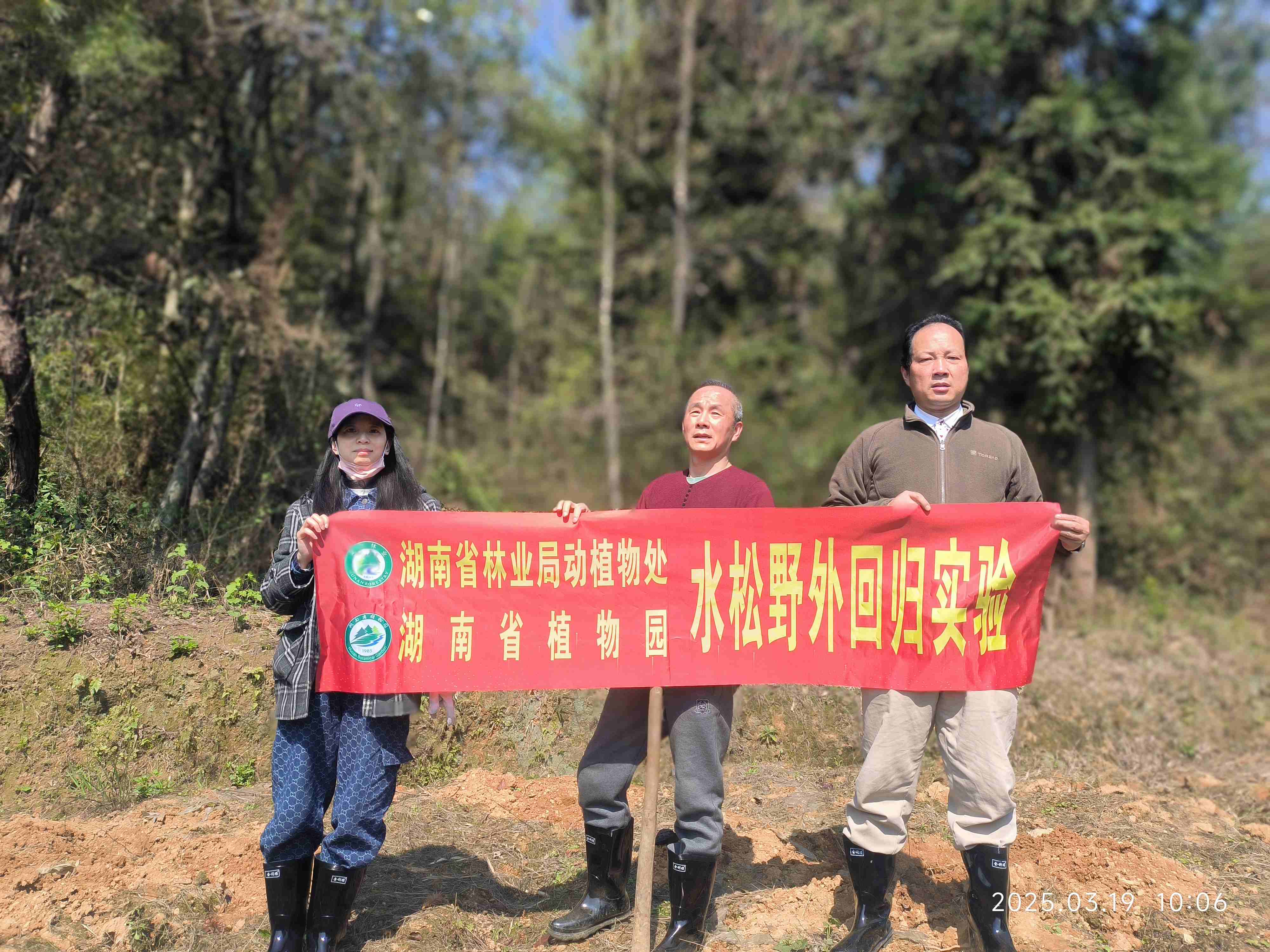 为推动湖南植物多样性综合保护工作,实现重点物种拯救及资源回归,园景观所联合保育所根据物种的适生环境、气候条件及立地要求,筛选了郴州市野外2处回归点,于3月19日开展水松野外回归试验,累计野外回归水松幼苗452株,回归面积6.5亩。