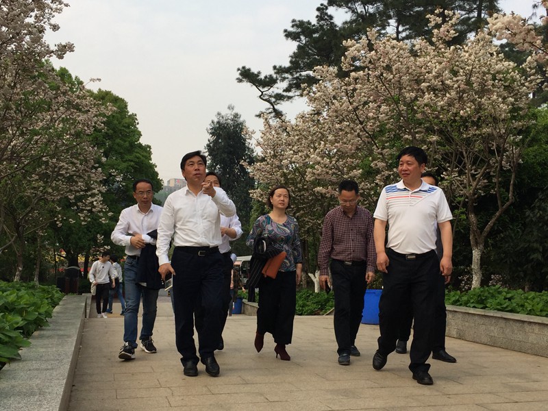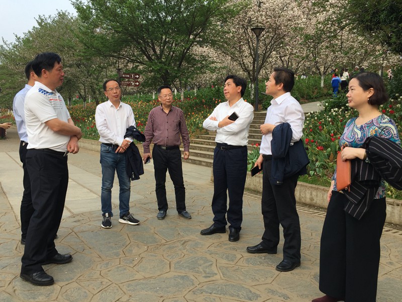 胡厅长一行先后视察了世界名花广场、樱花园、桂花园、竹园和国家杜鹃园。在视察过程中,彭春良书记向胡厅长一行汇报了本次樱花节暨世界名花生态文化节自3月10日正式开幕以来的总体情况,胡厅长一边视察一边询问有关情况,重点了解了安全稳定、游客游园、环境维护以及各类花卉的开花状况。