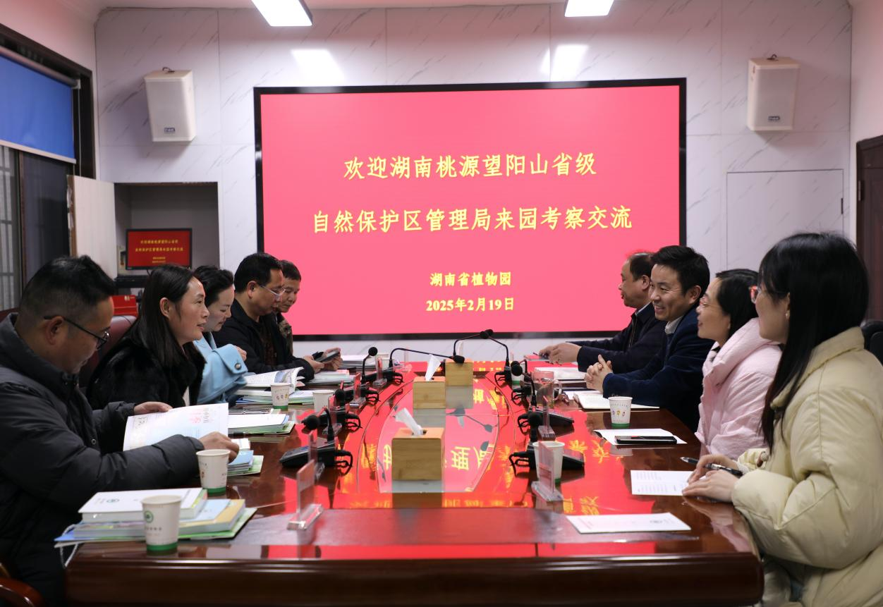 2月19日下午,湖南桃源望阳山省级自然保护区管理局孙玲珍局长一行来园考察交流,省植物园党委委员、副主任廖菊阳出席,林下经济所首席专家、自然教育中心负责人以及相关人员参加。