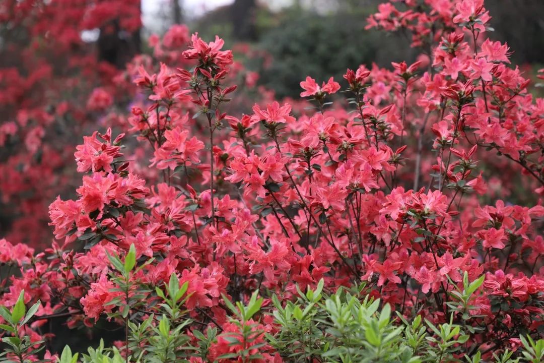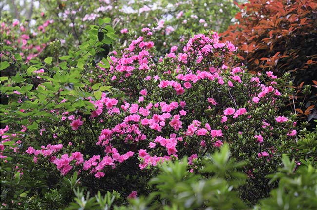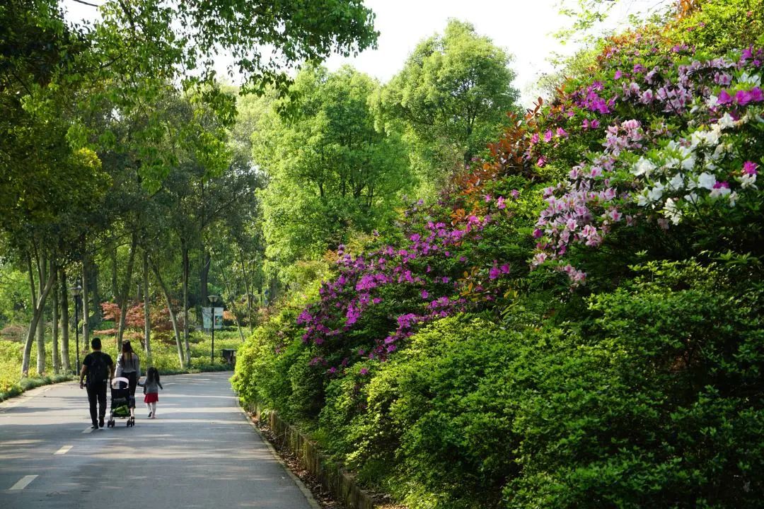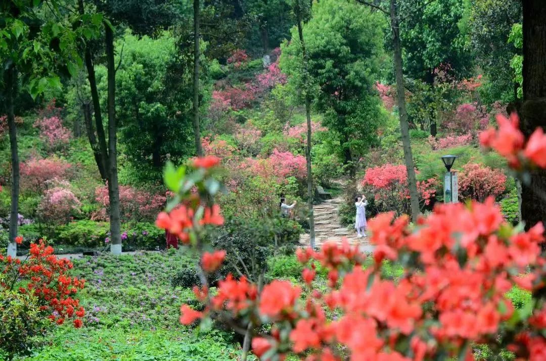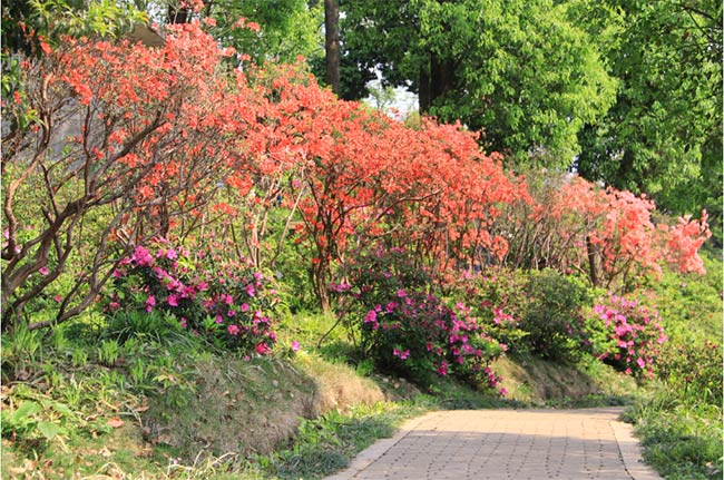 从植物园西门沿路而上至杜鹃广场,沿途可观赏映山红亚属区、杜鹃亚属区、常绿杜鹃亚属区、马银花亚属区、羊踯躅亚属区,杜鹃形成连绵起伏、浪漫无比的花海,花期可延续到5月上旬。