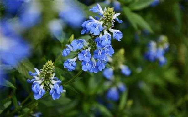 一种叫做“深蓝鼠尾草”的植物开花了,它的颜色是饱和度很高的蓝色,接近人们常说的宝蓝色,蓝得深邃沉静,辨识度非常高。