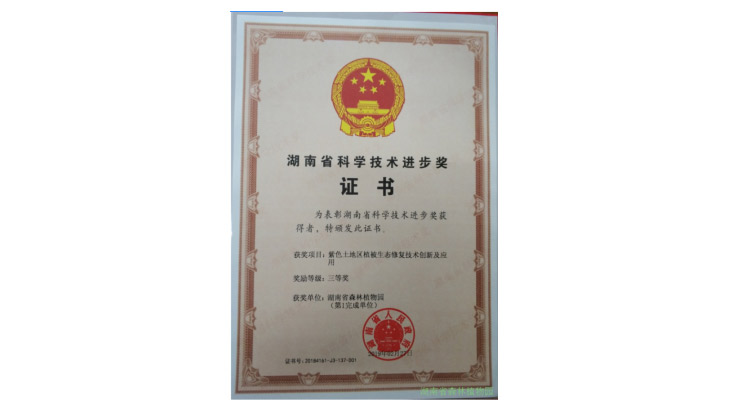 近日,我园主持完成的“紫色土地区植被生态修复技术创新及应用”项目荣获湖南省科学技术进步三等奖。项目历经十余年,通过从美国引进抗高温干旱植物57种315份,同时筛选和挖掘出国内五十余种适合困难地生态景观修复的植物材料,选育出马桑、多花木兰等抗旱耐瘠薄新品系,开展了白车轴草品种的ISSR和ITS遗传多样性分析及逆境生理研究与适应性筛选。项目执行期间,在衡阳、怀化等主要紫色土分布区域进行了基于紫色土先锋植物的边坡仿生植被恢复技术应用,建立了引种驯化资源圃200亩,提出紫色土先锋植物最佳组合模式5个。成果较好地解决了以岩石边坡切方和母岩裸露的紫色土区域为代表的植被恢复技术难关,为我省植被生态修复和“三难地”造林绿化提供了科学的技术和材料支撑,创造了较好的经济、生态和社会效益。