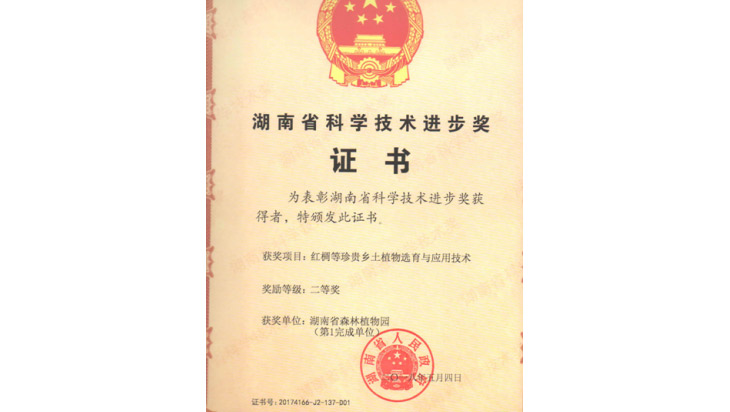 我园申报的湖南省科学技术进步奖“红椆等珍贵乡土植物选育与应用技术”项目荣获湖南省科学技术进步二等奖。