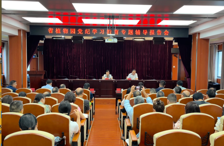 为深入学习贯彻习近平总书记关于党纪学习教育的重要讲话和重要指示精神,引导党员干部学纪、知纪、明纪、守纪,6月27日,驻省林业局纪检组副组长卓锦霞以“全面加强党的纪律建设,纵深推进全面从严治党”为主题,为湖南省植物园全体党员干部讲授了一堂生动的专题党课。省植物园领导班子成员、在职党员、退休党员干部代表共计60余人参加了学习。