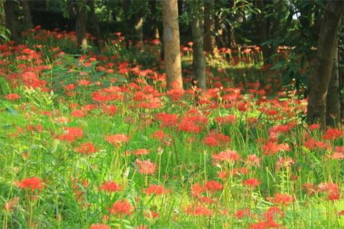 每年89月,不同花期的石蒜花