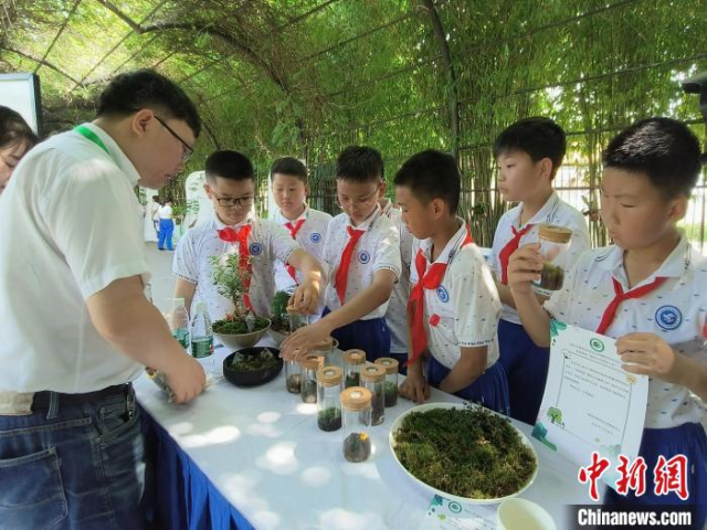 高级工程师借助苔藓景观瓶为学生科普苔藓知识。唐小晴摄