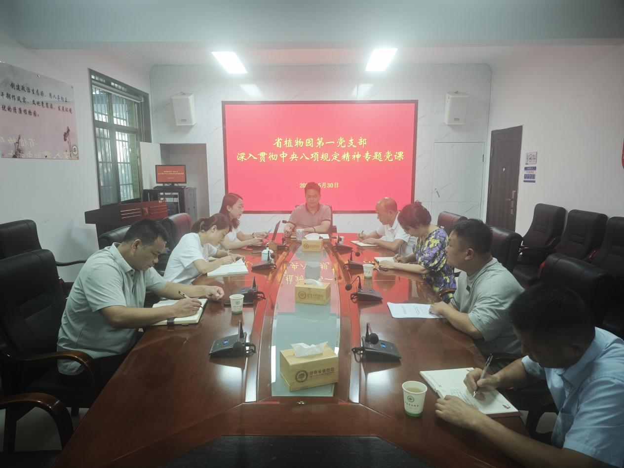 6月30日,省植物园第一党支部召开主题党日活动,重点聚焦深入贯彻中央八项规定精神开展集中学习研讨,联系支部分管领导谢科与支部书记分别讲专题党课,支部全体党员参加会议。