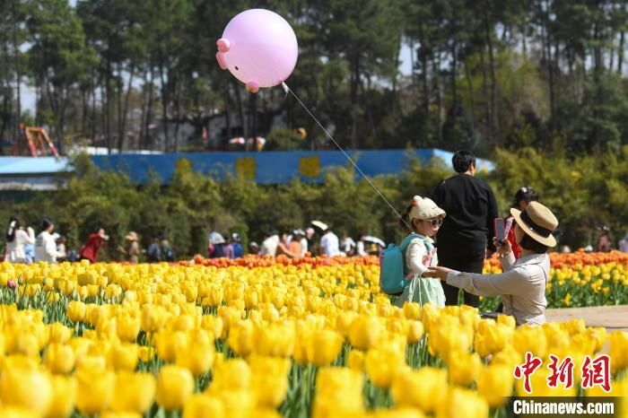 众多游人前来观赏盛开的郁金香。杨华峰摄