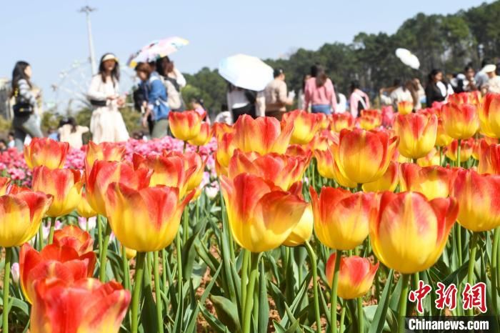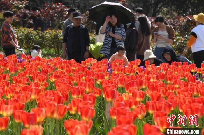 3月13日,湖南省植物园数十万株郁金香争相绽放,吸引了众多游人前来踏春赏花,感受春日暖阳。