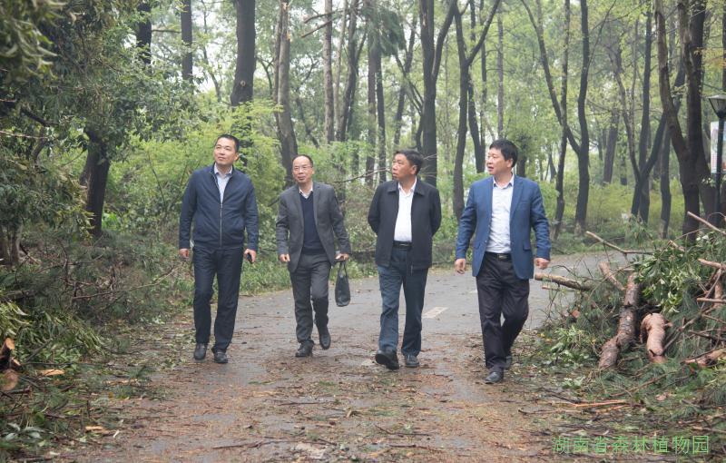 胡局长一行视察了受灾最重的珍稀植物区、枫香大道、梅园和樱花园等,每到一处都对受灾现场进行了详细查看,并询问灾情自救处置情况。3月22日凌晨,长沙地区出现了一次强对流灾害性天气,省植物园内的植物、民房和围墙受到较大损害,其中房屋受损面积200平米,大树断裂压坏车辆1台,围墙倒塌3处约150米,服务设施损坏5处,植被受损涉及范围约400亩,受损较大植株400余株,胸径20cm以上的湿地松、马尾松、香樟、枫香、苦槠、马褂木、樱花等大树300余株被拦腰折断或连根拔起。灾情致使园内交通阻断,部分服务设施损毁,初步估算损失达210万元。灾情发生后,园领导彭春良书记、刘玮主任及各相关分管领导第一时间赶到现场指挥疏通主干交通、查看排除安全隐患、指导恢复园林园貌。经对园区灾情现场评估,为确保游客安全决定临时闭园,并通过媒体及园网站、微信公众号和现场广播向社会公告和解释劝返。到3月23日下班前,主干交通基本疏通,正在对因灾造成的安全隐患进行排查,对园区卫生进行彻底清扫,对园林园貌和有关设施恢复制定方案。根据灾情救治进展和园林园貌恢复情况,拟于3月24日上午8时恢复对外开放。