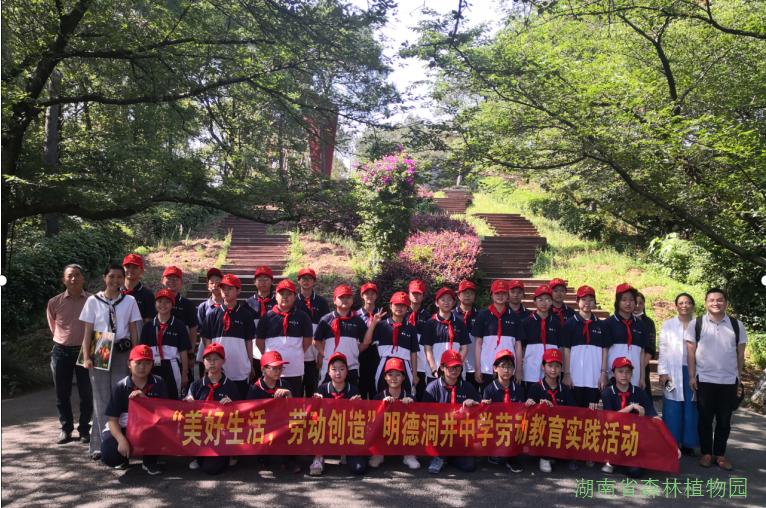 明德洞井中学为了进一步强化学生的劳动观念,培养学生良好的劳动习惯,增强学生劳动实践的技能。2020年05月12日下午,夏日炎炎,该校35名学生代表在校党支部书记曾志红的带领下,来我园开展了主题为“美好生活,劳动创造”的劳动教育实践活动。