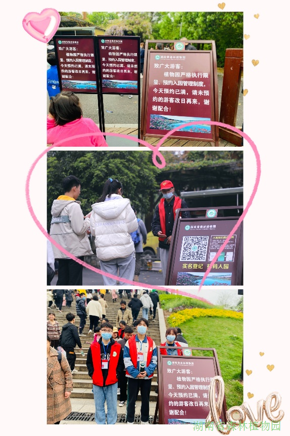 为了让游客形成限流、预约、查验入园的共识和行为准则,结合游客咨询的热点问题,志愿者们在湘府东路、北门藤架拐角处、植物园路、验票口、游客服务中心外围等游客途径沿线设置温馨提示牌和咨询服务点。红马甲风景线温暖而美丽,他们为游客提供周到细致的预约咨询服务;根据预约情况及时更换现场提示牌并做好相关解释工作,将预约压力和矛盾层层化解;积极引导游客文明游园,用实际行动弘扬奉献、友爱、互助、进步的志愿者服务精神。为鼓励先进、树立榜样,园区创新激励办法,为优秀志愿者颁发荣誉证书!