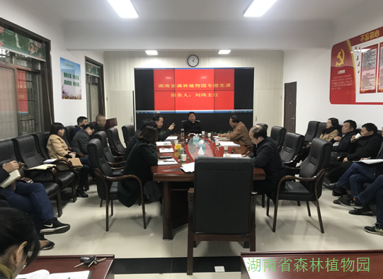 11月19日,湖南省森林植物园举行专题党课报告会,园党委副书记、主任刘玮讲以《践行新的发展理念,促进植物园高质量发展》为主题的专题党课,全体园务会成员出席并聆听,郑焱副主任主持报告会。