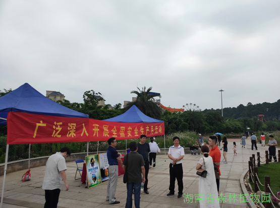 为深入开展 “安全生产月”活动,6月16日上午,湖南省林业局安委会邓绍宏副主任、郑朗副主任来园指导开展安全生产宣传咨询日活动,园领导彭春良书记、蒋利洪副主任、分管领导康用权陪同参加。