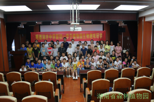 6月27日下午,明德洞井中学约60名初一新生在班主任和生物课老师的带领下来到我园进行生物课程趣味研学。研学活动分为室内理论讲座和户外植物专类园参观及生态小游戏三大块,拟将研学活动和单项课程有机地融合起来,提高学生的生物科学素养,打造颇具特色的生物学第二课堂教育。